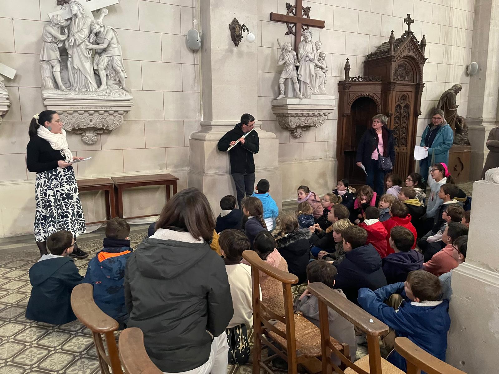 Les enfants du caté ont pu vivre un chemin de croix à la basilique du Sacré Cœur ce lundi 30 mars.